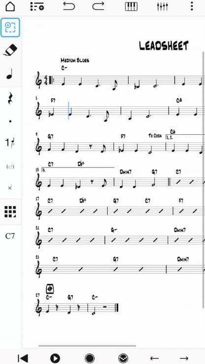 Notion Mobile은 터치 기반의 인터페이스로 설계되어 스마트폰, 태블릿, 크롬북 등 다양한 모바일 기기에서 손쉽게 작곡할 수 있도록 돕습니다. 피아노 키보드, 기타 프렛보드, 드럼 패드 등의 입력 도구가 내장되어 있어 악보 작성이 직관적이며 효율적입니다.