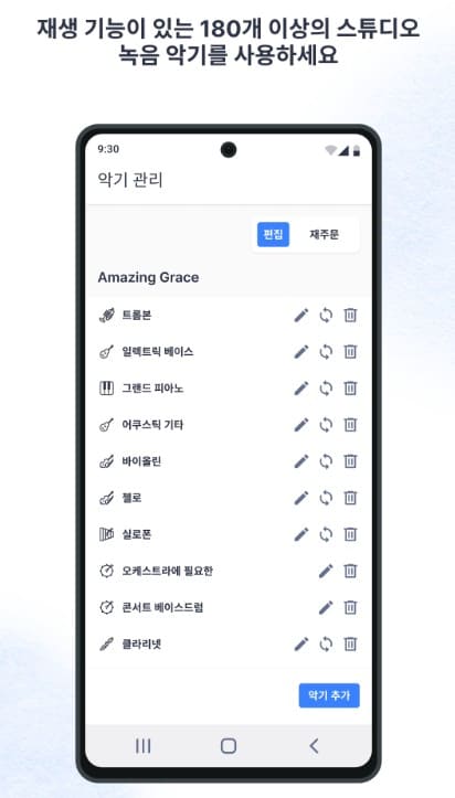 피아노, 기타, 바이올린, 드럼 등 다양한 악기 트랙을 제공하여, 여러분이 원하는 스타일로 음악을 창작할 수 있습니다. 이 앱은 각 악기에 대한 음원도 포함되어 있어, 악기 소리를 실시간으로 확인하며 작곡을 할 수 있습니다. 또한, 여러 트랙을 동시에 다루어 복잡한 악기 구성을 손쉽게 관리할 수 있습니다.