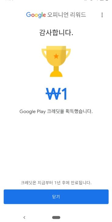 Google 오피니언 리워드는 간단한 설문조사에 참여하여 Google Play 크레딧을 획득할 수 있는 앱입니다. 앱을 설치하고, 본인과 관련된 기본 질문에 답하면, 이후 매주(또는 간헐적으로) 설문조사를 받을 수 있습니다. 설문에 참여하여 최대 ₩1,200의 Google Play 크레딧을 얻을 수 있는 기회를 제공합니다. 다양한 주제의 설문조사에 응답하고 보상을 받는 간편한 방법입니다.