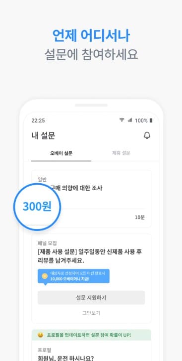 오베이는 간단하고 직관적인 사용자 인터페이스를 제공합니다. 설문 참여부터 보상 확인까지 모든 과정이 쉽고 빠르게 진행되며, 사용자 경험을 중시한 설계로 많은 이들이 부담 없이 이용할 수 있습니다. 설문 참여만으로도 자신의 의견을 나누고 보상을 받을 수 있어 사용자에게 큰 만족을 줍니다.