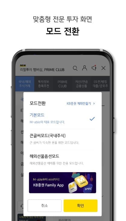 KB증권 M-able 미니 어플 특징 안내