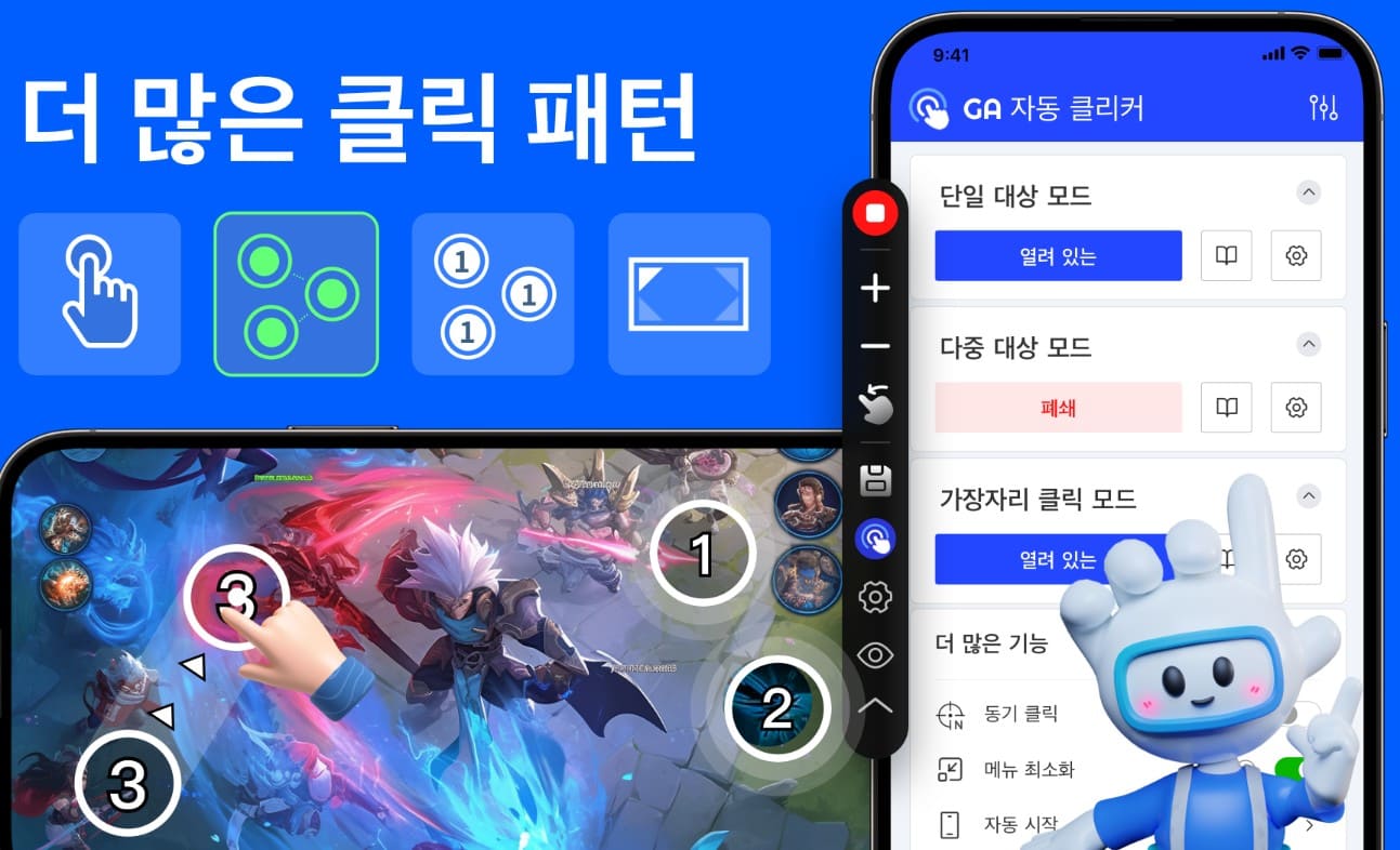 모바일 게임을 즐기거나 반복적인 업무를 처리할 때 단순한 자동 클릭만으로는 부족함을 느낀 적이 있으신가요? GA Auto Clicker는 기존의 단순한 매크로 기능을 뛰어넘어 사용자가 원하는 모든 시나리오를 완벽하게 구현해 주는 고성능 자동화 어플입니다. 루팅이라는 복잡한 과정 없이 설치 즉시 사용 가능하며 단일 지점 클릭은 물론 여러 지점을 동시에 터치하는 동기화 모드까지 지원하여 다채로운 활용이 가능합니다. 특히 이 어플의 가장 큰 강점은 기계적인 패턴을 숨겨주는 감지 방지 기술입니다. 클릭 간격과 좌표를 미세하게 무작위로 변동시켜 마치 사람이 직접 누르는 것처럼 시뮬레이션하기 때문에 게임 내 보안 시스템의 제재를 피하는 데 탁월합니다. 가로, 세로 모드 지원과 메뉴 최소화 기능으로 화면 가림 없이 쾌적하게 사용할 수 있는 이 어플로 진정한 자동화의 자유를 경험해 보세요.