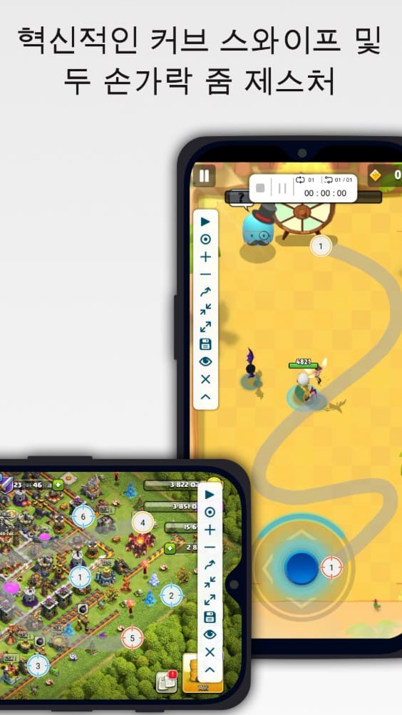 일반적인 오토마우스가 단순히 한 지점을 클릭하는 것에 그친다면 이 앱은 손가락의 움직임을 리얼하게 모방합니다. 화면을 부드럽게 쓸어 넘기는 커브 스와이프 기능과 두 손가락을 이용한 줌 인/아웃 제스처를 지원하여 RPG 게임이나 지도 앱 등 복잡한 조작이 필요한 환경에서도 완벽하게 작동합니다.