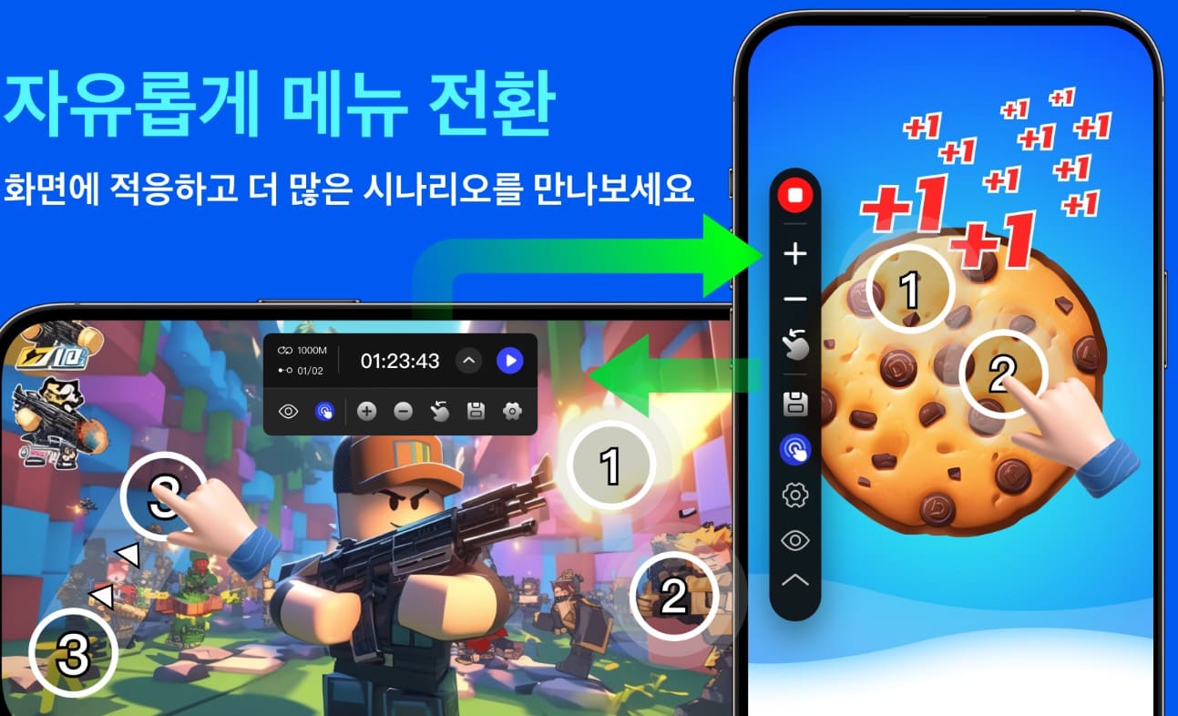 단순히 한 지점을 연타하는 것을 넘어 여러 위치를 순서대로 누르거나 화면을 위아래좌우로 미끄러지듯 이동하는 스와이프 동작까지 완벽하게 구현합니다. 이를 통해 웹툰 스크롤, 틱톡이나 릴스 넘기기, 복잡한 패턴의 게임 플레이 등 다양한 상황에서 유연하게 대처할 수 있습니다.