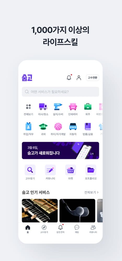 숨고 - 이사, 청소, 취미, 인테리어 전문가 찾기 앱 소개