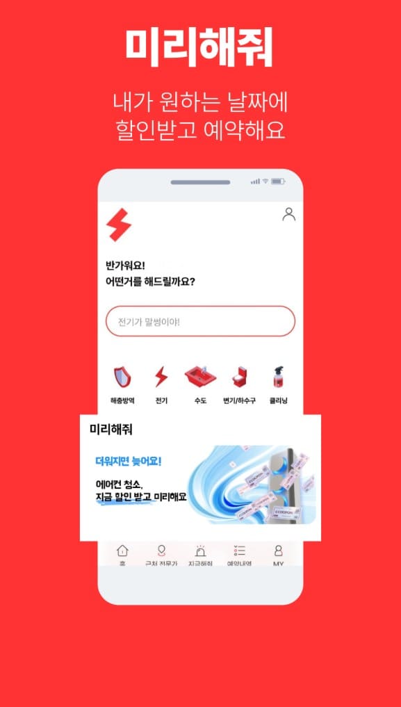 여름철 에어컨 청소나 특정 시즌에 비싸지는 방역 서비스 등을 비수기에 미리 예약하여 파격적인 할인가로 이용할 수 있는 기능입니다. 미리 준비하는 것만으로도 비용을 크게 절감할 수 있으며, 원하는 날짜에 맞춰 여유롭게 서비스를 받을 수 있어 알뜰한 살림꾼들에게 필수적인 기능입니다.
